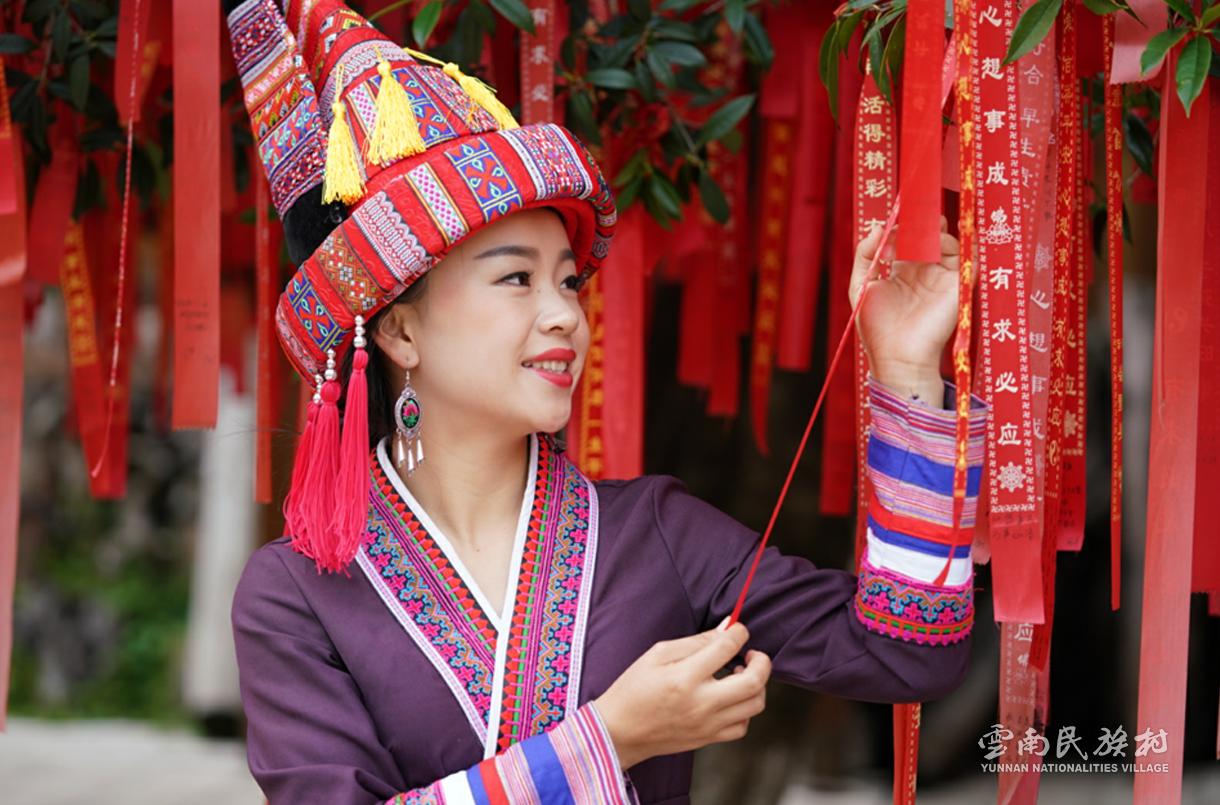 彝族在云南境內(nèi)約471萬(wàn)人,是省內(nèi)人口最多、分布最廣的少數(shù)民族,主要聚居在金沙江、元江流域和哀牢山、無(wú)量山腹地。彝族是一個(gè)能歌善舞的民族,民間打歌、跳樂(lè)之風(fēng)盛行,大三弦、跌腳舞久負(fù)盛名?;鸢压?jié)是彝族最具特色的民族節(jié)日。彝族村占地50余畝,三虎浮雕墻與虎頭內(nèi)祖師形象表現(xiàn)了彝族虎鷹文化。太陽(yáng)歷廣場(chǎng)圖騰柱上有太陽(yáng)、虎、火和八卦圖形象,周?chē)h(huán)繞著10個(gè)朝向不同的月球造型,外圓周有12生肖石雕。依山而建的“...